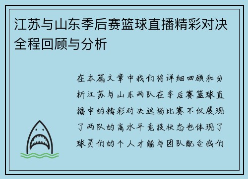 本文将对CBA赛场上广东队与江苏优酷队的精彩对决进行全面回顾与分析。这场比赛不仅展示了两支球队的高水平竞技状态,也让球迷们领略到了篮球运动的魅力。文章将从四个方面进行详细阐述:首先是比赛前的准备情况,其次分析双方球队的战术布局,接着总结比赛中的关键时刻,最后探讨球员个人表现及其对比赛结果的影响。通过这些角度,我们希望能够更深入地理解这场激烈交锋背后的故事和技术细节。 1、赛前准备与心理状态 在这...